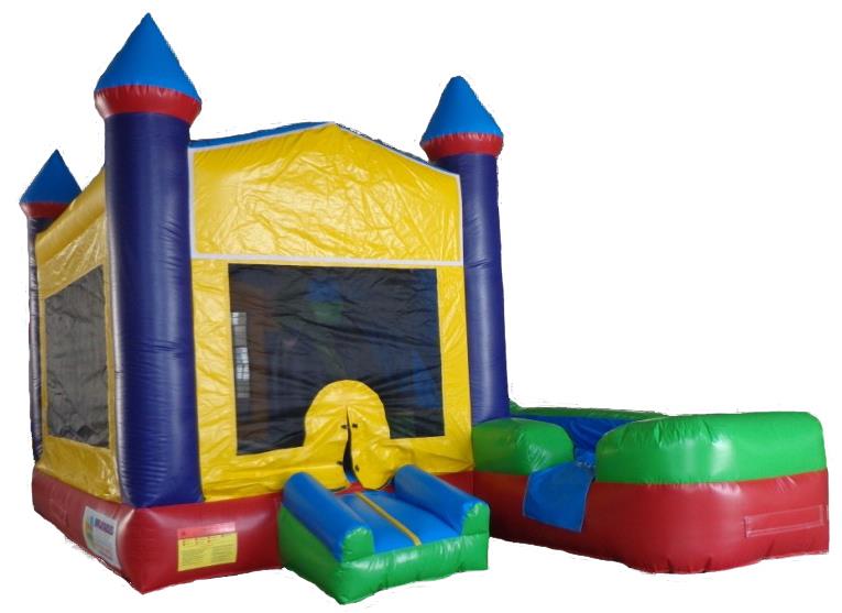 Instead of renting a bounce house and a slide, rent a combo and save!! These two Castle Combos have a ladder, slide and large bouncing area for lots of fun. Add a popcorn popper with your Classic Castle Combo and light up the party!! All bounce houses are cleaned, inspected and sanitized after each rental.
